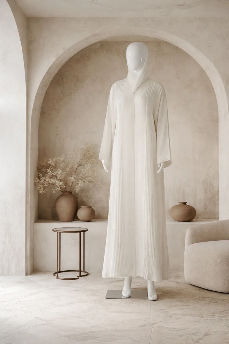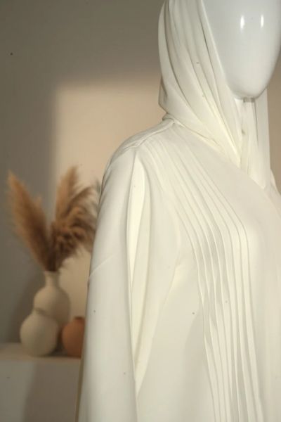 Hatun Sukoon is made for moments that call for quiet elegance. Designed in a Pure white shade, this casual wear abaya blends modesty with refined detailing. The graceful fall of the fabric keeps the look effortless. Paired with a matching sheila, Hatun Sukoon is a timeless choice for evenings, gatherings, and special occasions.